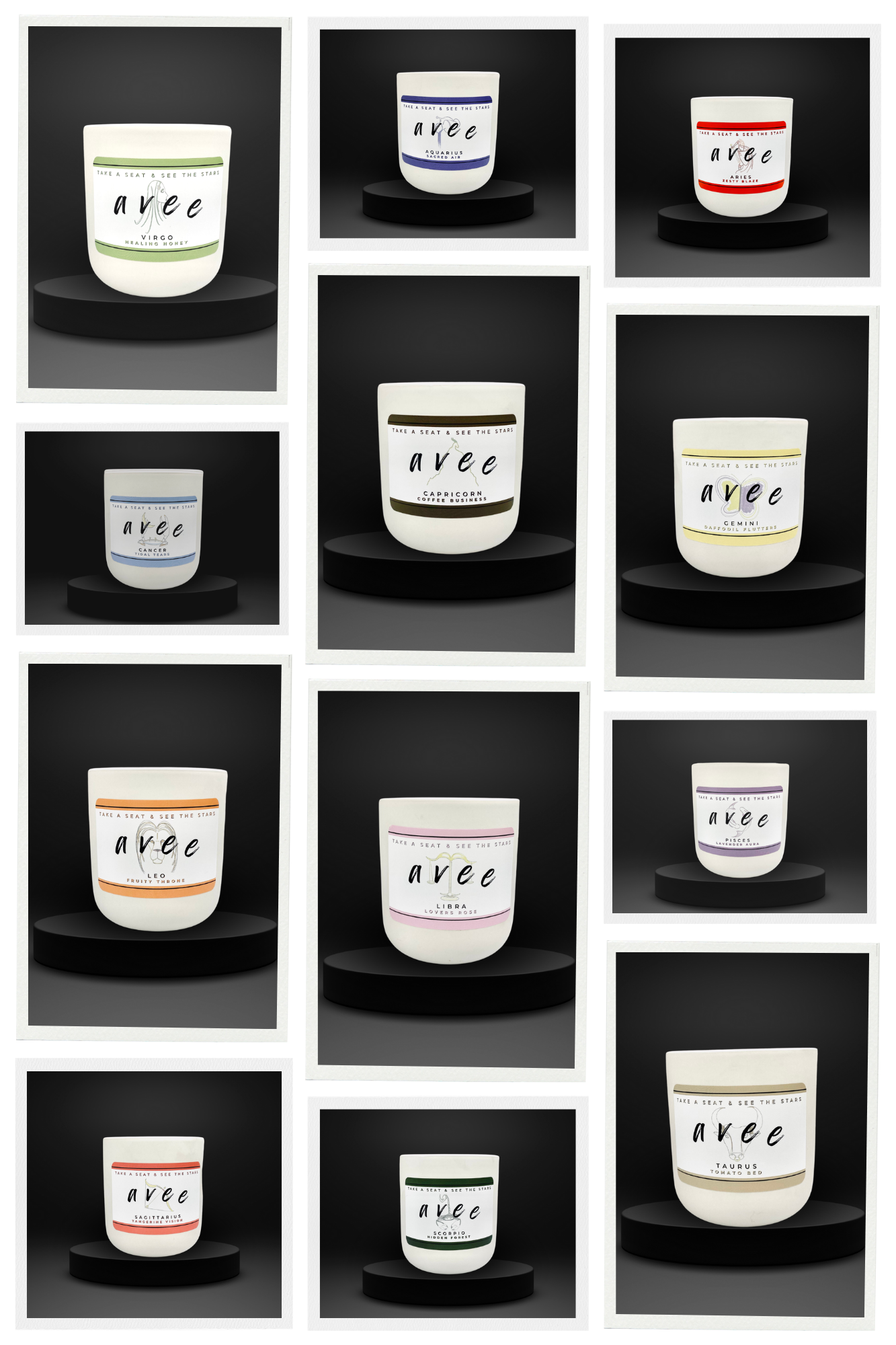 We are beyond excited to introduce our brand new Zodiac Golden Glass Collection – a fresh, updated product line from avee that we’ve poured our hearts (and a lot of love) into. This is more than just a candle collection; it’s a reflection of everything we believe in: clean, conscious ingredients, beautiful design, and a deep connection to the unique essence of the zodiac.